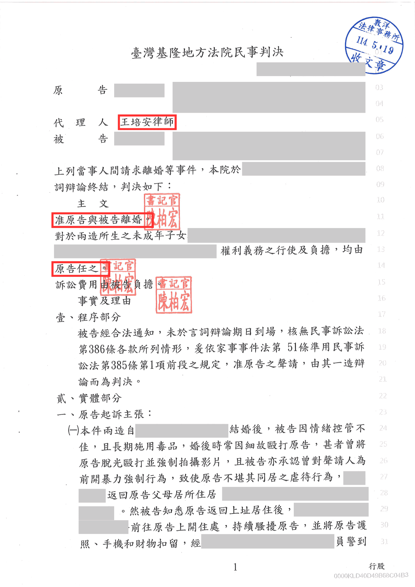王培安律師離婚勝訴,獲得單獨監護權-法巢