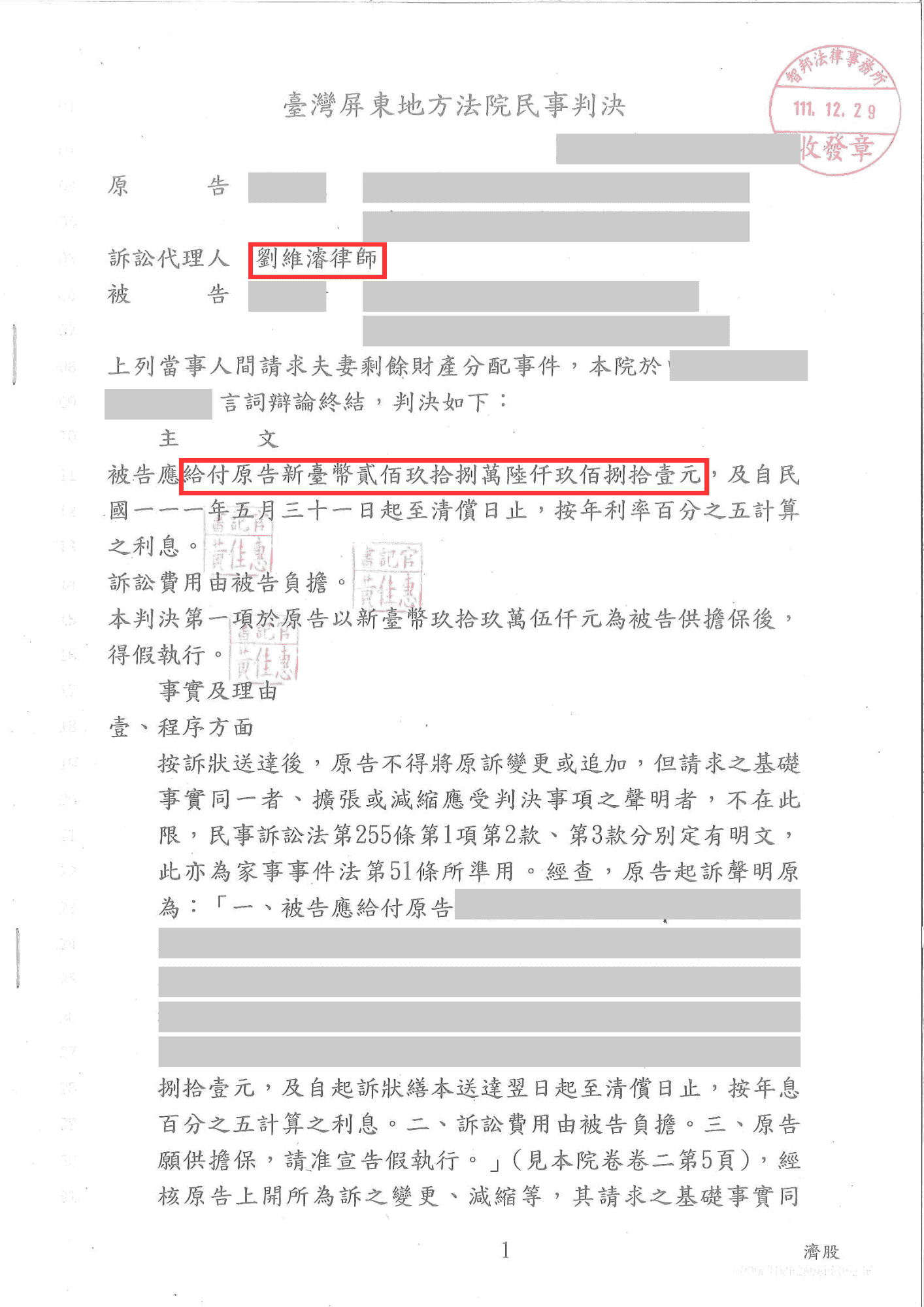 劉維濬律師剩餘財產分配勝訴,分得 298 萬-法巢