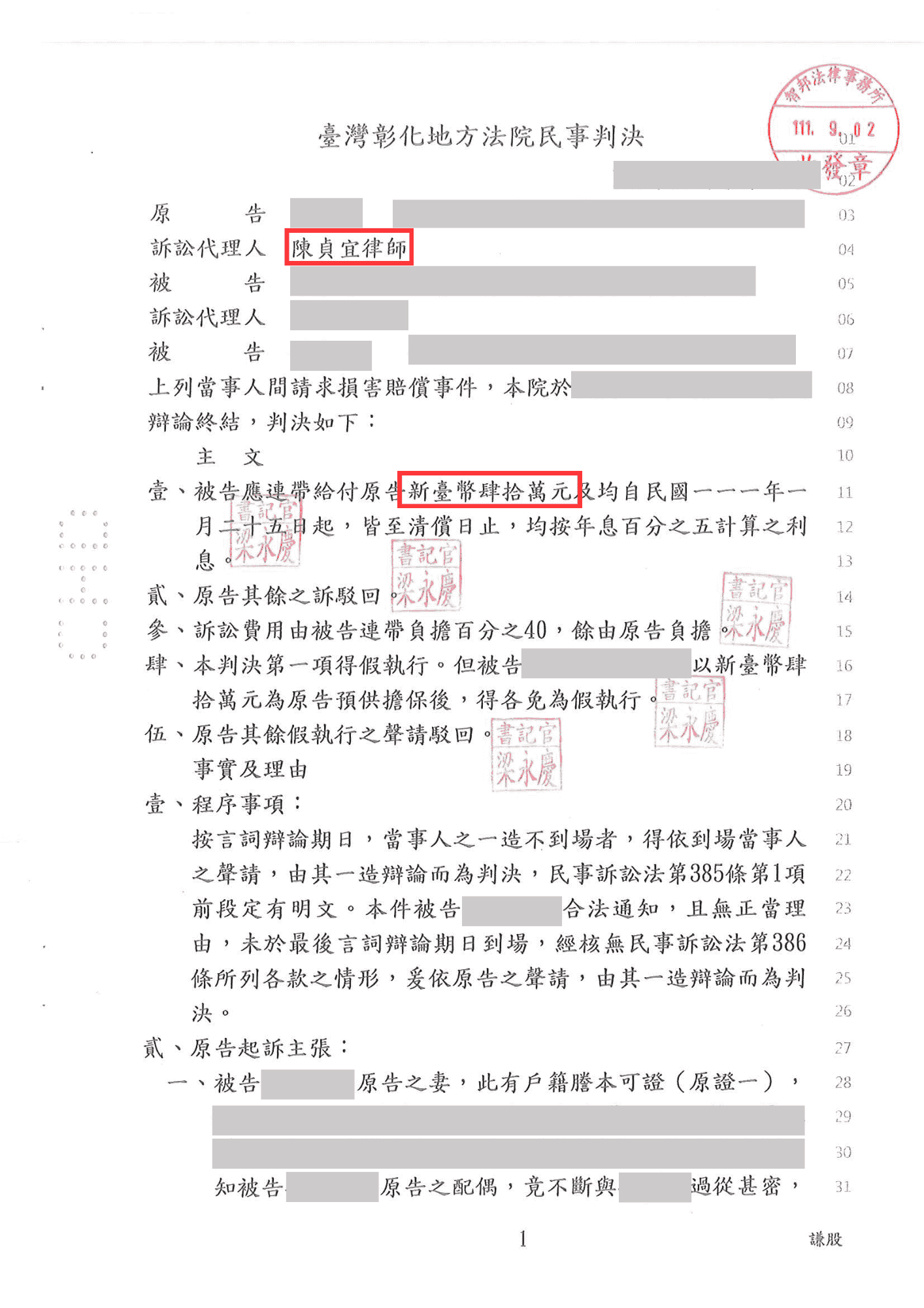 陳貞宜律師侵害配偶權勝訴,獲賠 40 萬-法巢