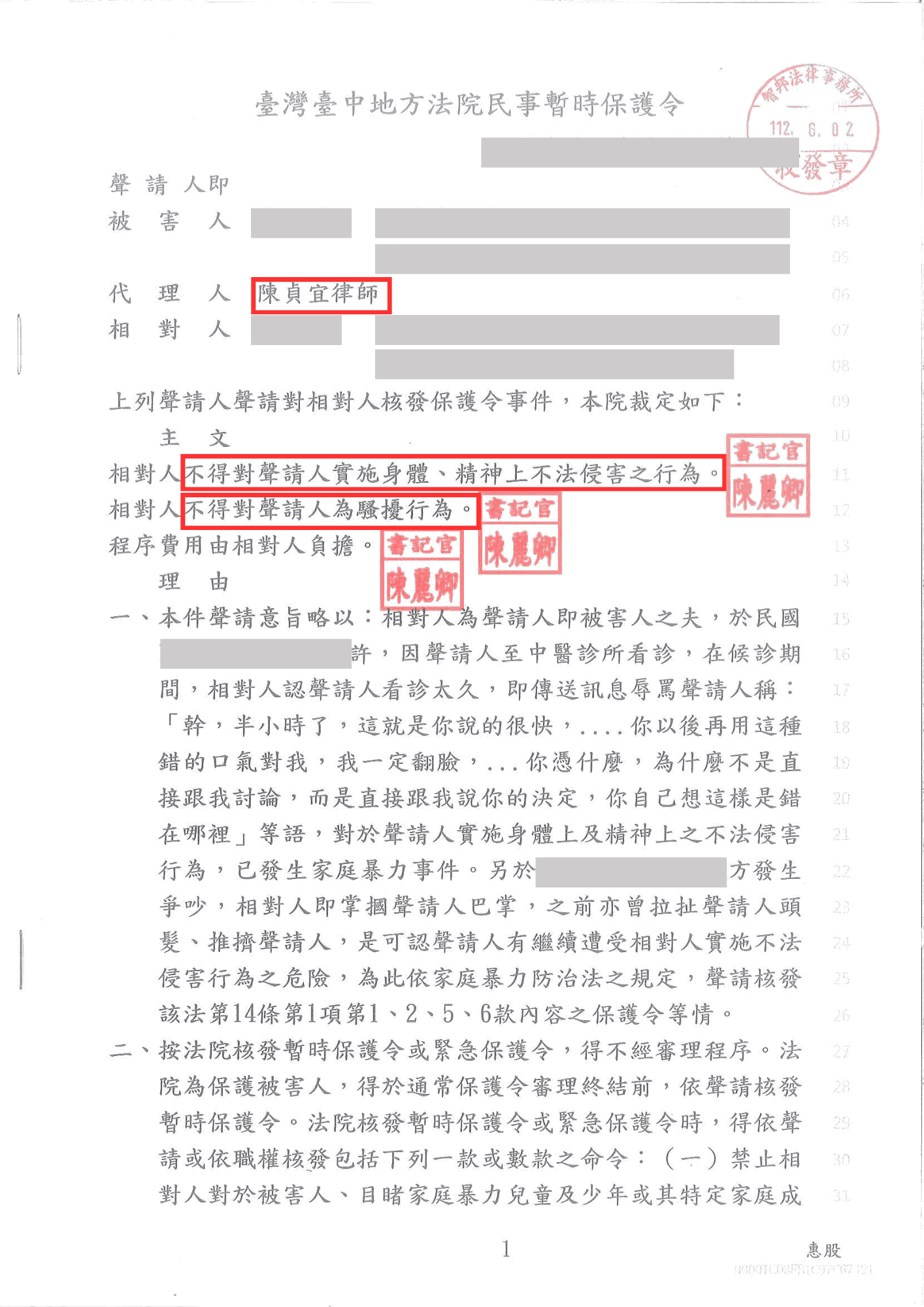 陳貞宜律師勝訴,暫時保護令聲請成功-法巢
