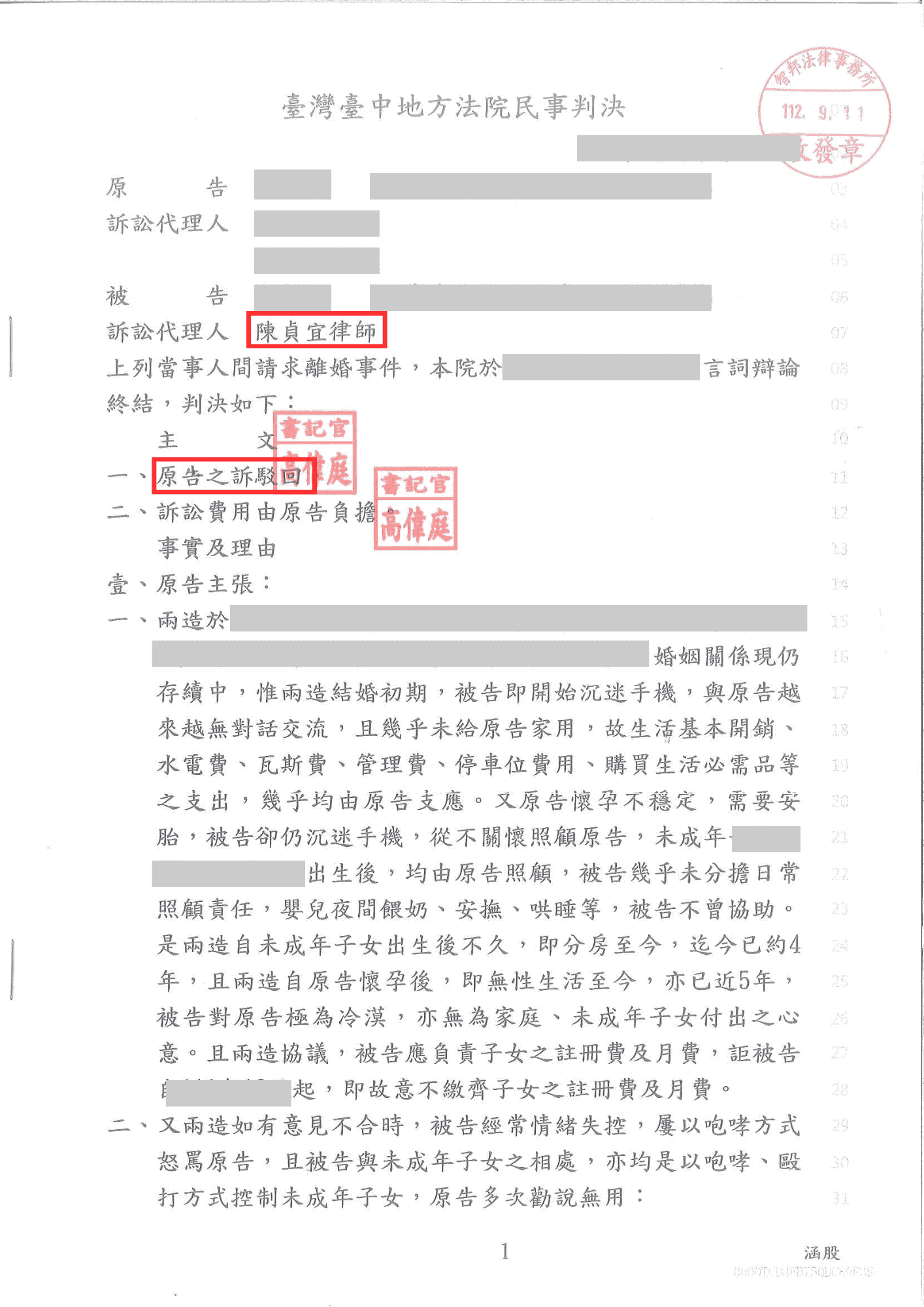 陳貞宜律師離婚勝訴,對方訴請離婚失敗-法巢