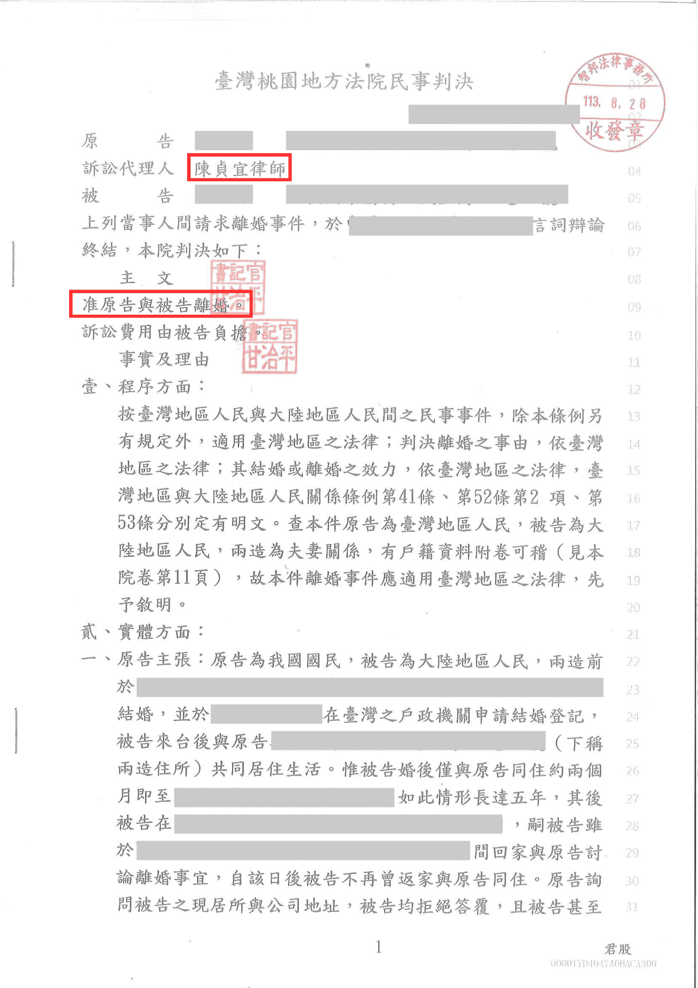 陳貞宜律師離婚勝訴,跨國離婚成功-法巢