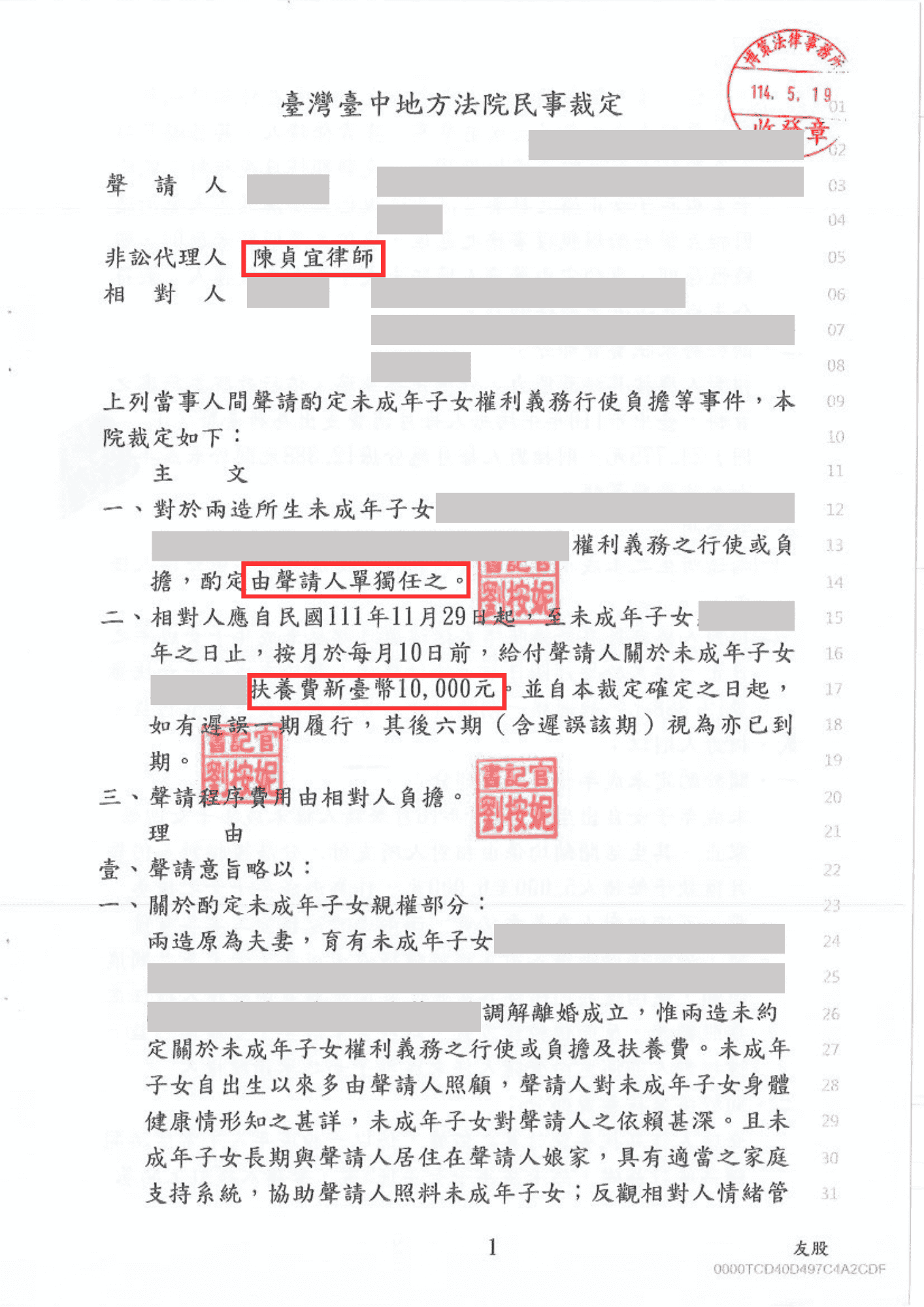 陳貞宜律師勝訴,獲得主要照顧者成功-法巢