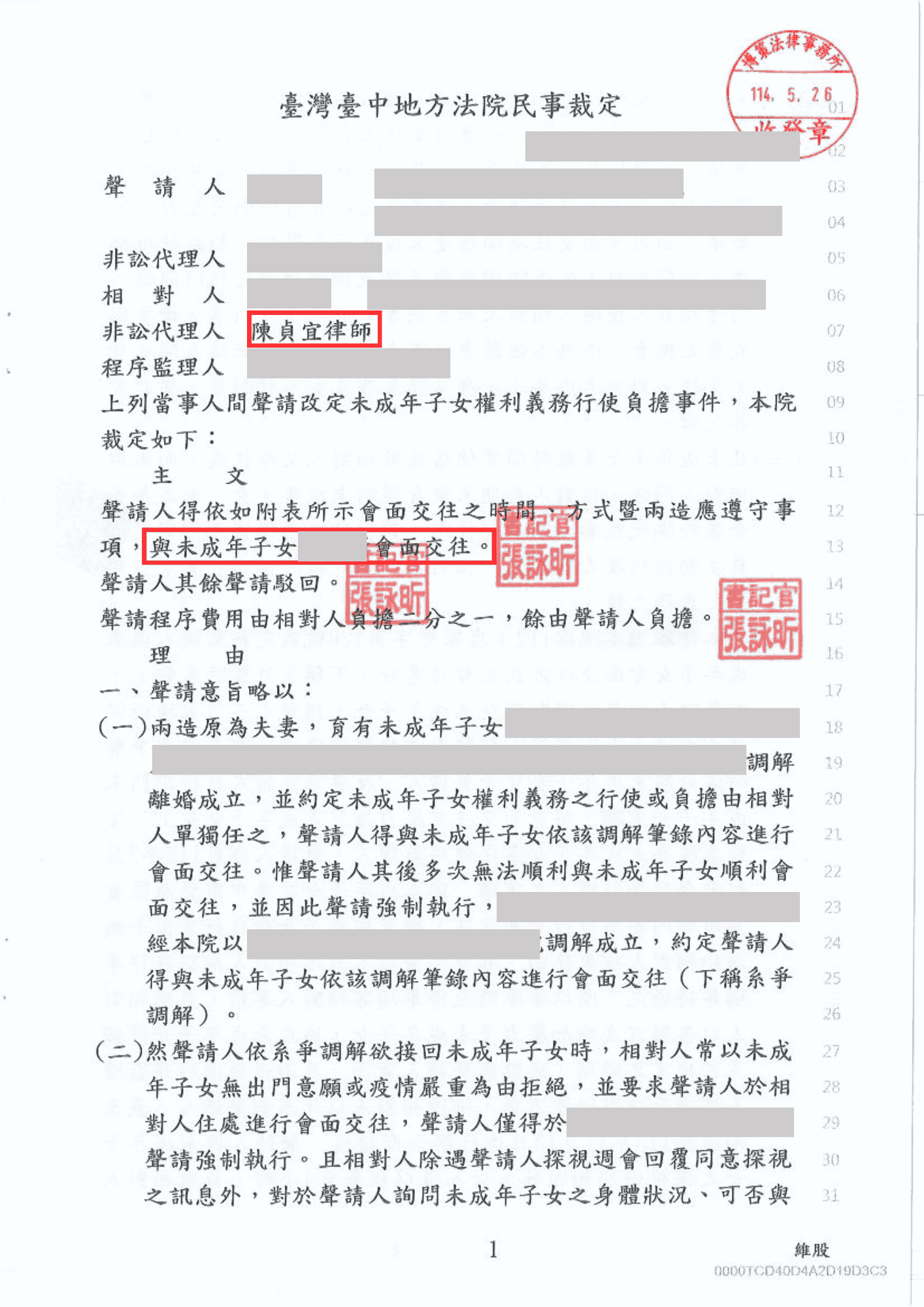 陳貞宜律師勝訴,對方爭取監護權失敗-法巢