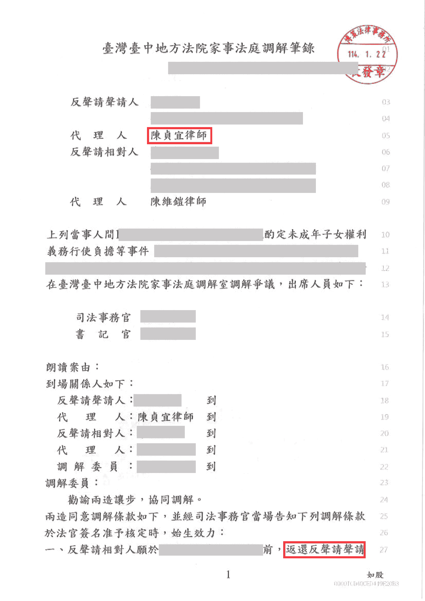 陳貞宜律師調解成功,獲得代墊扶養費 43 萬-法巢