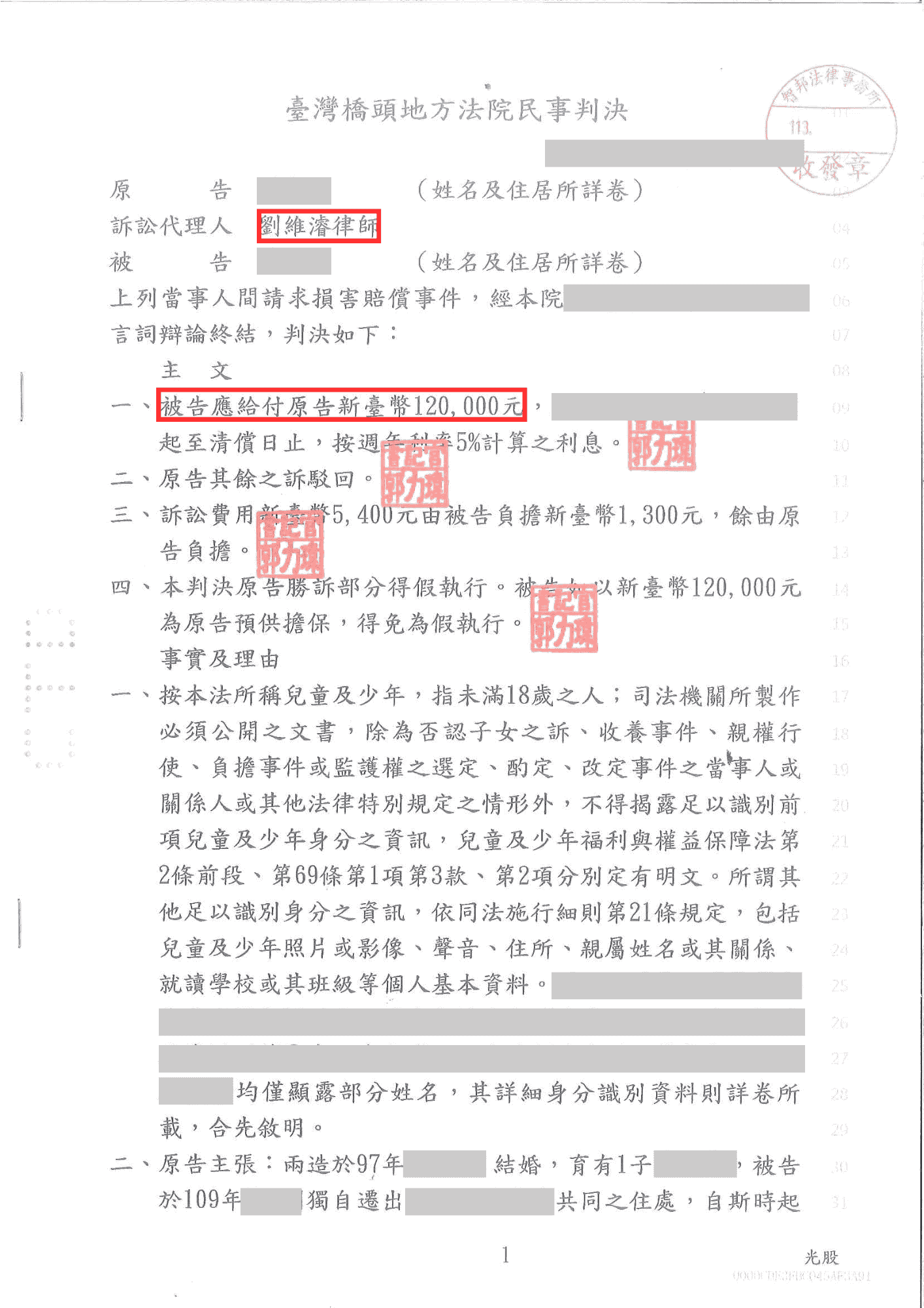 劉維濬律師侵害配偶權勝訴,獲賠 12 萬-法巢