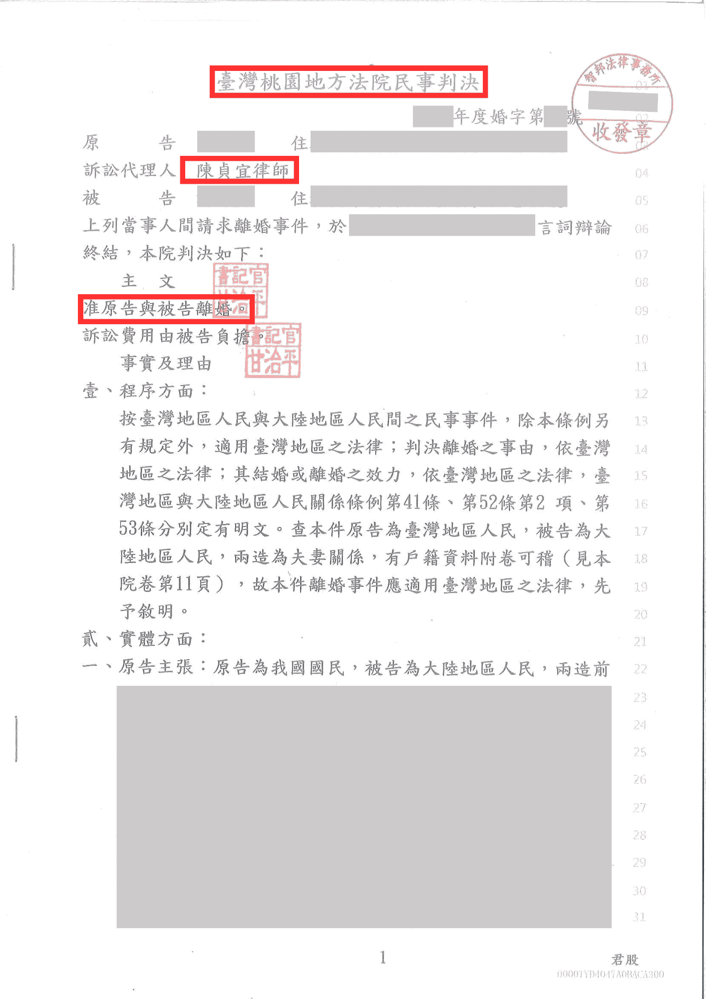 於是W先生決定向法巢免費離婚諮詢服務確認離婚的可能性,並委任陳律師提起訴訟。