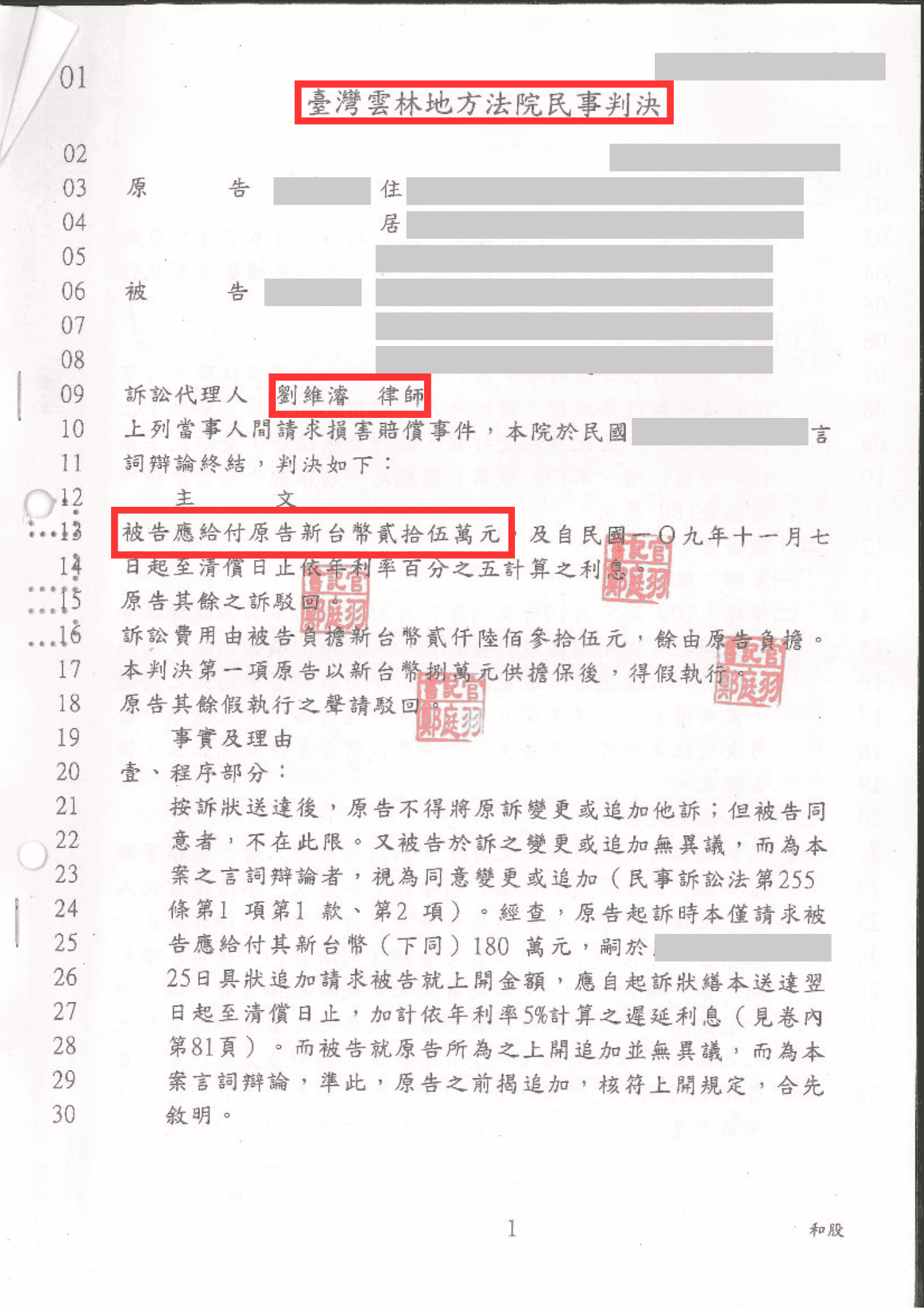 以下分享三則雲林在地的真實案例,看劉維濬律師與陳貞宜律師如何蒐集證據與庭訊辯護,為當事人爭取到最公正的判決結果。