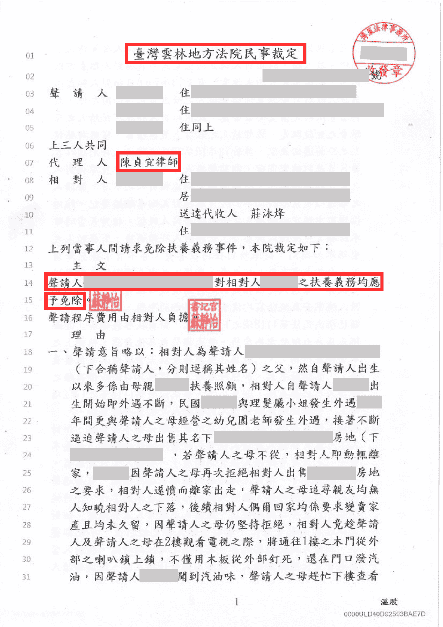 雲林律師勝訴案例|惡父潑汽油逼賣房,法院裁定子女免除扶養義務