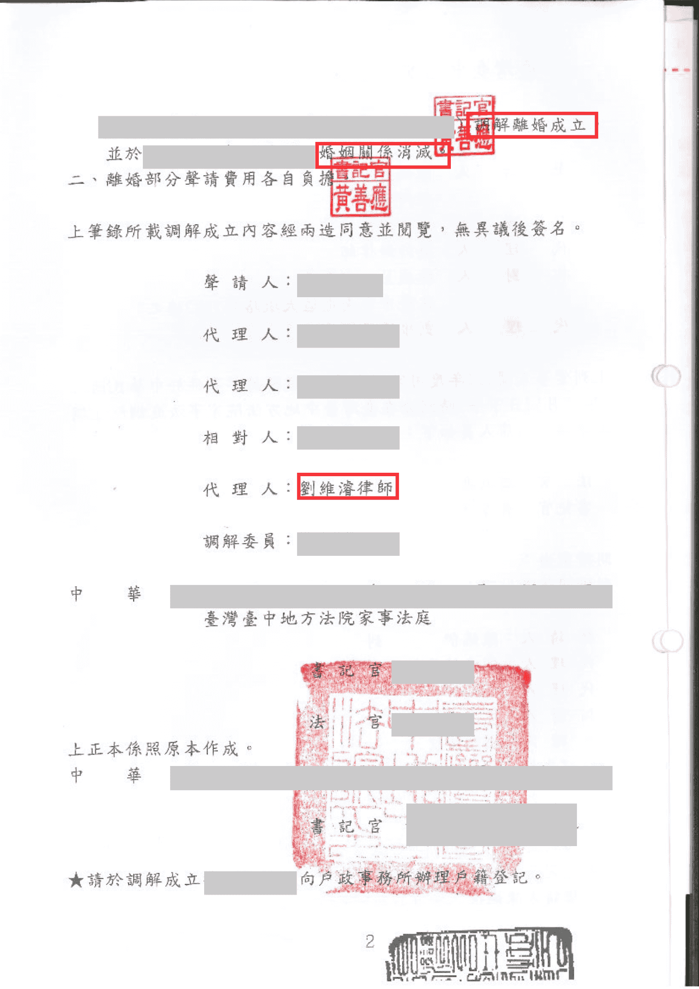 劉維濬律師台中離婚調解成功,離婚成功-法巢